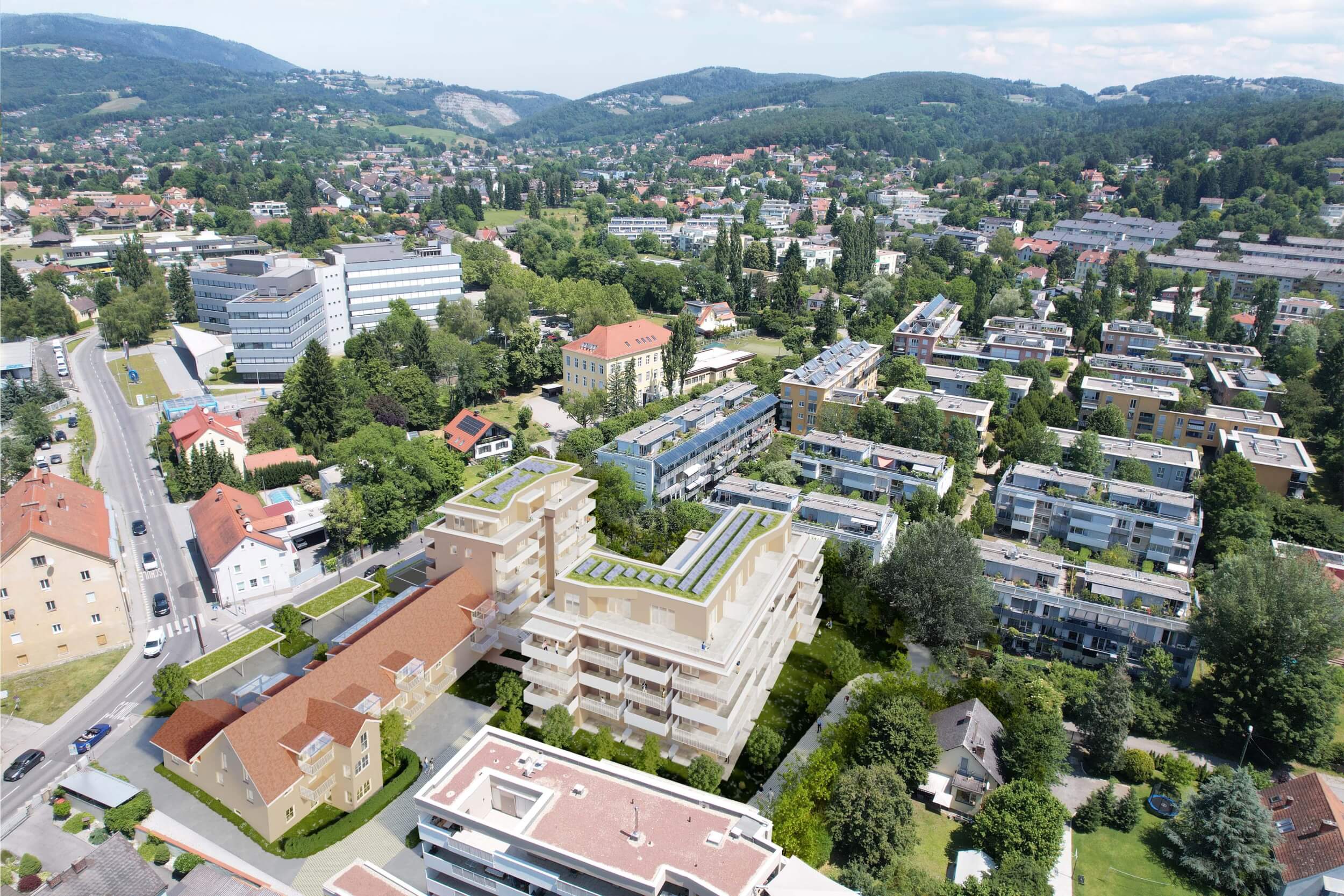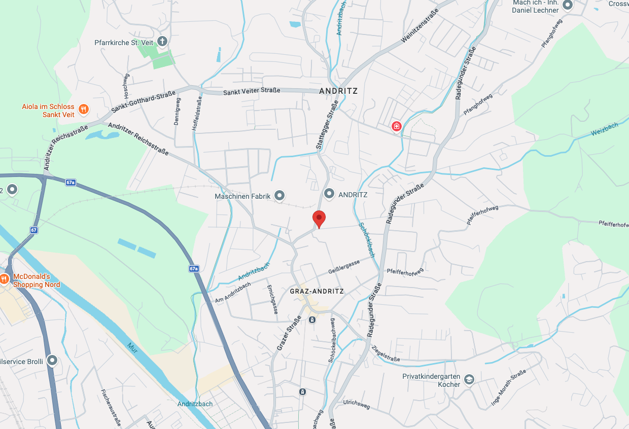 Das Projekt in der Prochaskagasse 2–4 liegt in Graz-Andritz in einer ruhigen Seitenstraße, umgeben von Natur. Gleichzeitig sind Schulen, Nahversorger und öffentliche Verkehrsmittel gut erreichbar. Die Nähe zu Erholungsgebieten wie dem Schöckl und dem Murradweg macht die Lage ideal für alle, die entspannte Wohnqualität mit guter Infrastruktur verbinden möchten.