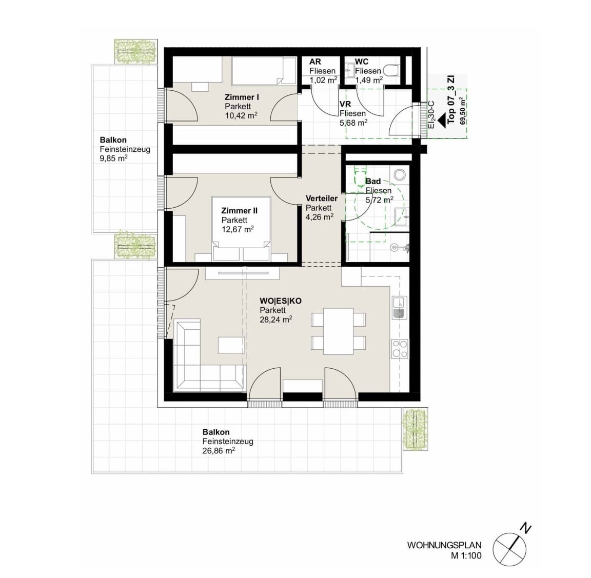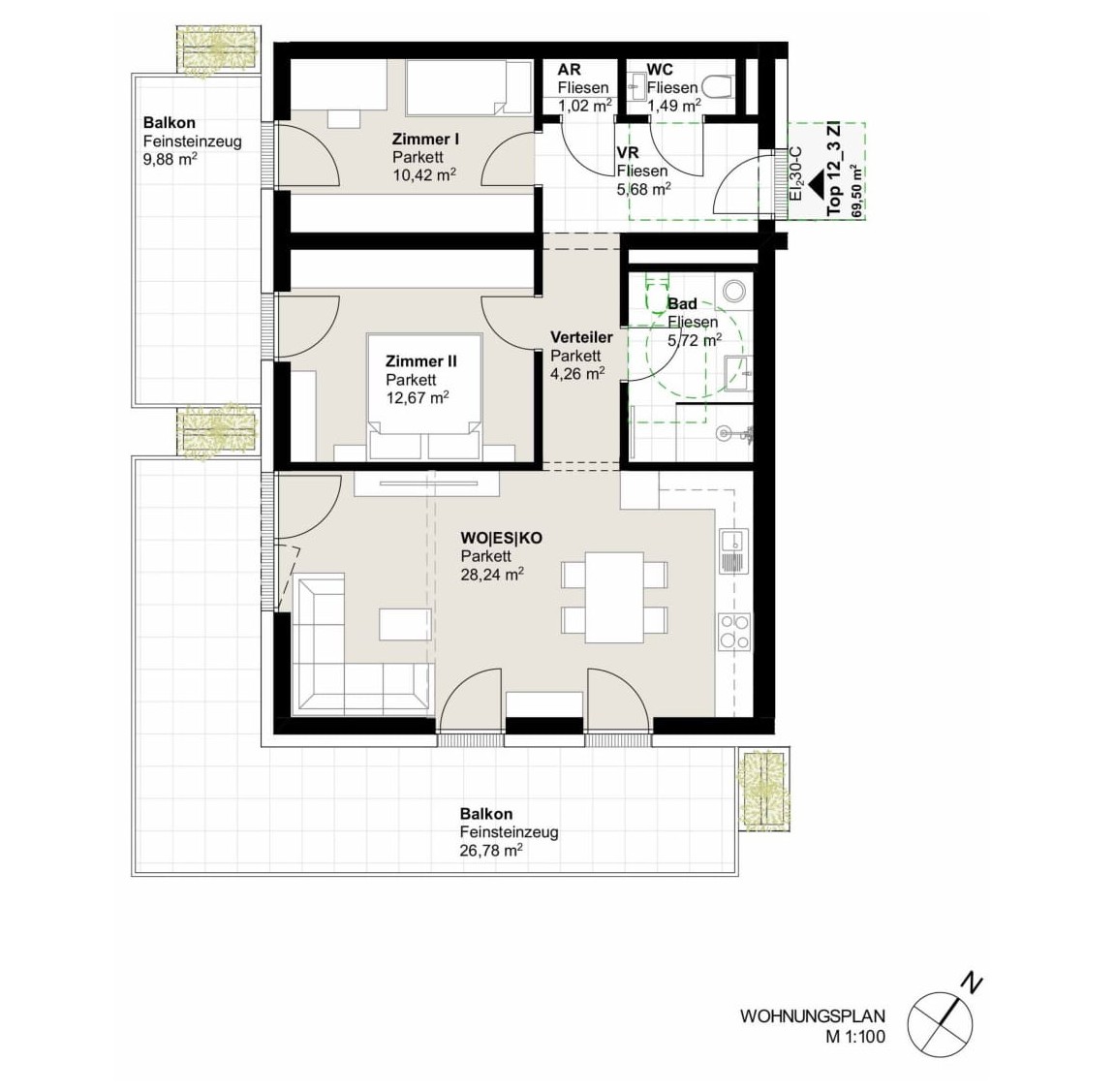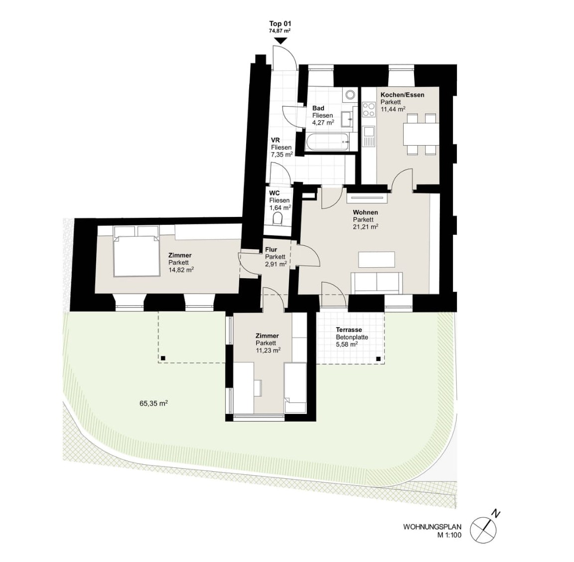 - Großzügige Außenflächen: Balkon, Terrasse oder Eigengarten