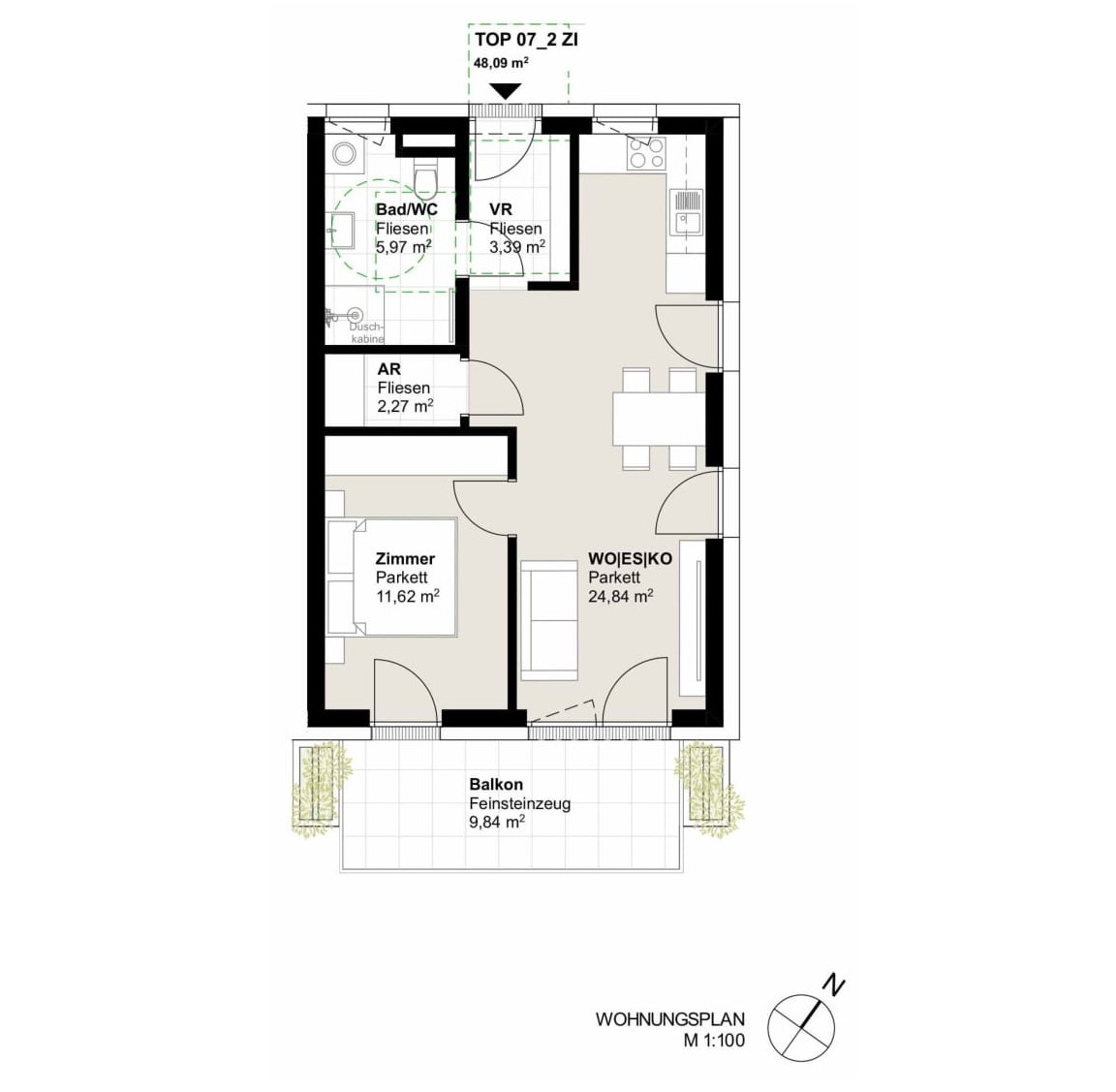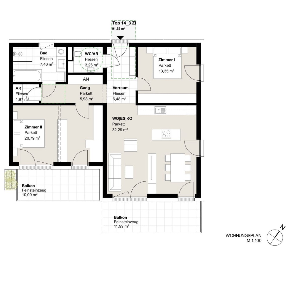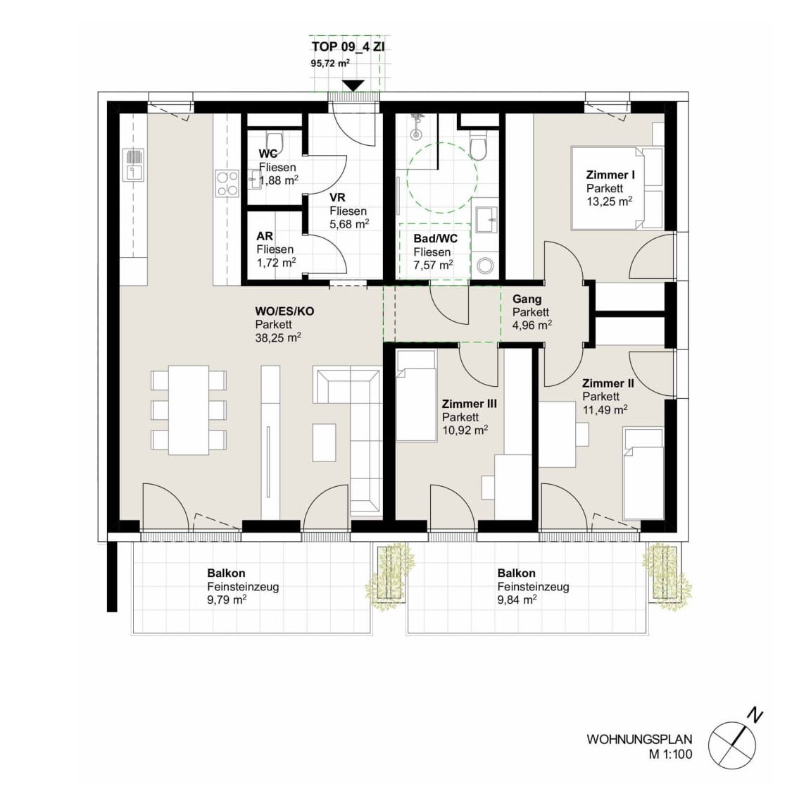 - Großzügige Außenflächen: Balkon, Terrasse oder Eigengarten