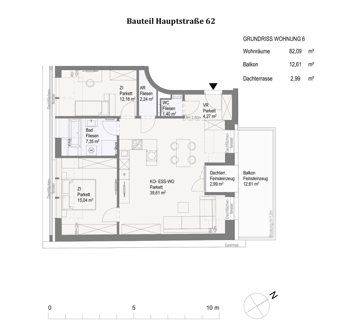 3-Zimmer-Wohnung im 2. Geschoss mit ca. 82,09 m² Wohnfläche sowie Balkon (15,60 m²).